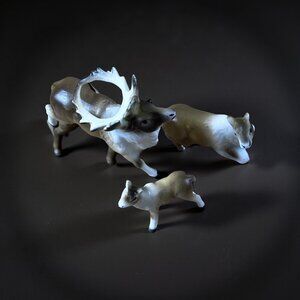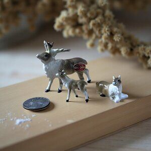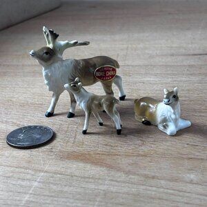3 Vintage Miniature Bone China Deer Figurines Family Set Mini Small Shadowbox Te