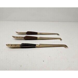 3 Vintage Pronged Cheese Knives Buddha Bronze Brass Rosewood Siam Thailand 6”