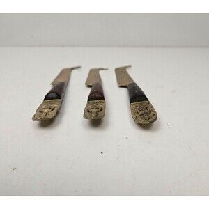 3 Vintage Pronged Cheese Knives Buddha Bronze Brass Rosewood Siam Thailand 6"