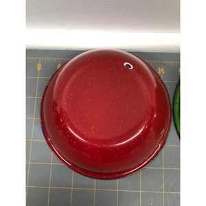 3 Vintage Red, Yellow, & Green Speckled 6 1/4" Enamelware Bowls Metal