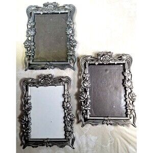 3 Vintage Rose Ornate Pewter Picture Frames 1 Matte 2 A Bit Shiny 4.5" x 6.5"ish