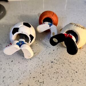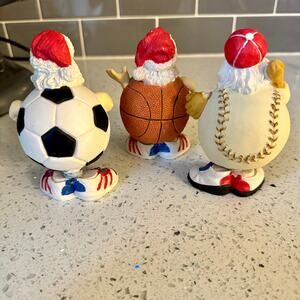3 Vintage Sports Santa Christmas Bobblehead Figurines Soccer Baseball Basketball