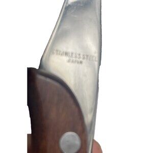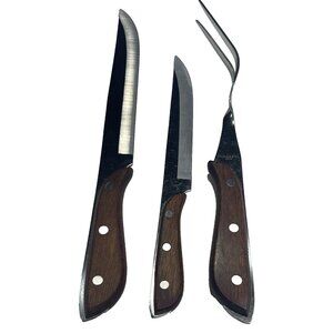 3 Vintage Stainless Steel Carving Meat Fork, 2 Knifes Brown Wooden Handles Japan