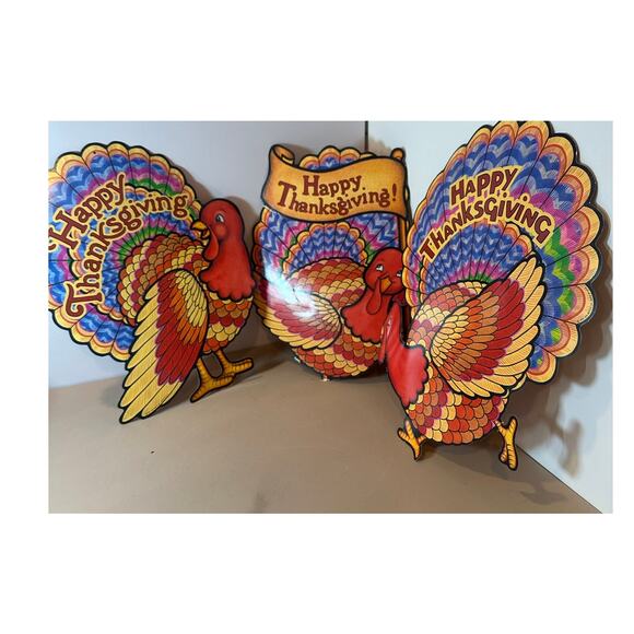 3 Vintage Thanksgiving Die Cut Turkeys Decoration Window Cutouts 1997 Beistle Co