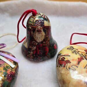 3 Vintage Victorian Decoupage Christmas Olde World Paper Mache Ornaments