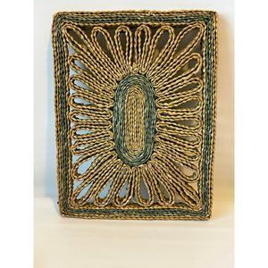 3 Vintage Wicker Rattan Hot Pad Trivets Woven Red Blue Purple Turquoise 6x8"