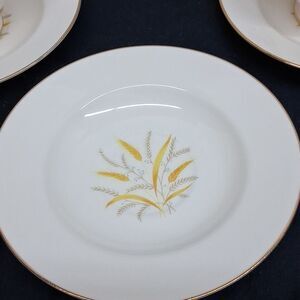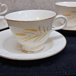 3 Vintage Homer Laughlin Autumn gold wheat pattern cup and saucer sets.