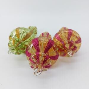 (3) Vtg Art Blown Glass Drop Christmas Ornament Pink Green