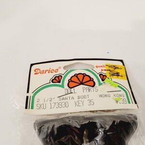 3 Vtg Darice Mini Black Santa Doll Boots 2.5" Craft Made in Hong Kong