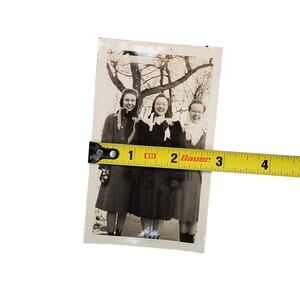 Lot of 3 Vintage Friends Hanging Out on Cold Day Original Monochrome Photo Black and White Found Snapshot 4.75 x 2.75 in Portrait.