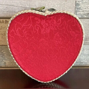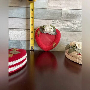 3 Vtg Valentine’s Day Heart Red Fabric 4” Trinket Jewelry Gift Boxes Cupid Love