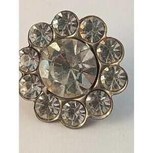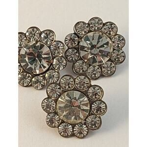 3 Vtge Rhinestone Buttons 7/8" Curved Shanks Clear On Silver Color