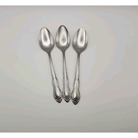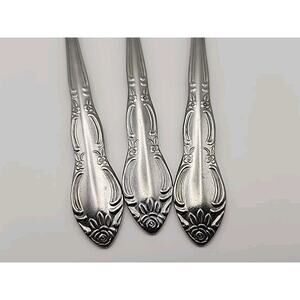 3 Wesley Forge WLF2 Teaspoon Stainless Steel 6 1/4" Floral Design Art Deco MCM
