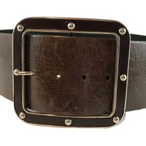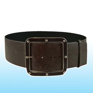 3" Wide Brown Leather Belt w/ Studded Buckle