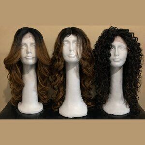 Synthetic lace front and lace part wigs. Low heat resistant. Brand new never been worn. Package of wig not included.