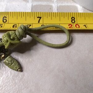 Patina Painted; repurposed true vintage button w. green Leather Loop Closure