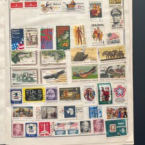 These albums are in good shape. The stamps in the album are used, not mint. According to the handwriting on one of the pages, an album was started in 1971. I wasn't able to take pictures of all the pages but there are many more stamps than are pictured.