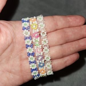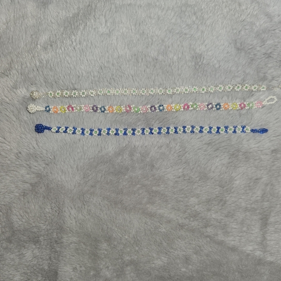 Set of 3 anklets. All 3 are beaded in flower design. Each are approximately 9.75 inches in length.