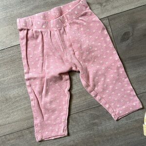 1 pink pants with tan polka dots + bunny on the butt size 3-6 months + 2 shorts size 0-3 months. All gently used. No rips or stains.