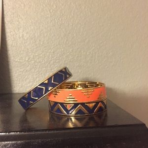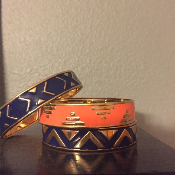 3 Aztec patterned bracelets! two Royal blue and one orange. both with gold accents! never worn! will accept offers!!!