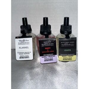 3 bulbs Bath & Body Works Wallflower Refill Bulb Flannel Poppy Leaves NEW
