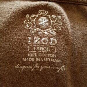 -Back to basics with this lovely IZOD v-neck made from 100% cotton knit fabric in a warm brown. Three-quarter sleeves and unfitted bottom hem, a great foundation piece for every day.