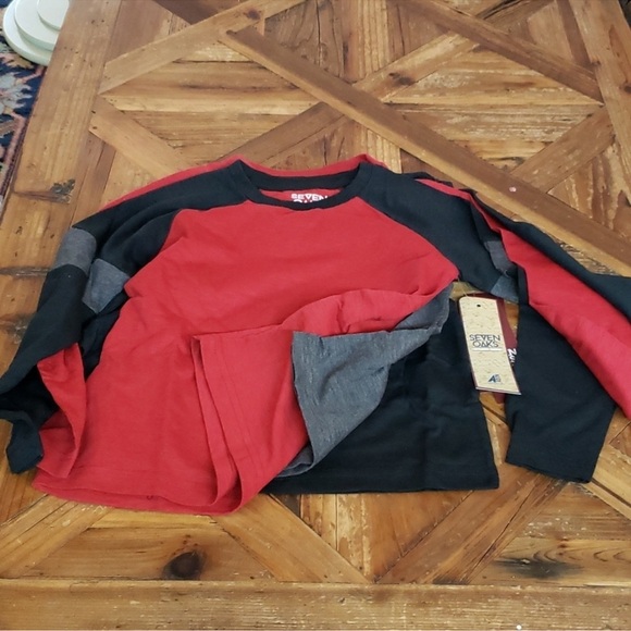 Stylish and comfortable, this red and black raglan shirt is perfect for active kids. Made with quality materials for durability and ease of movement.