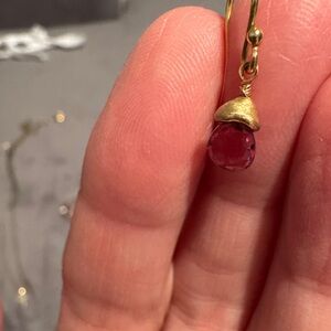 So I have three earrings here that I am missing or I lost the other earring and I’m not want to wear just one earring on one side and I know a lot of people do so the first one is a pair shaped earring. It’s a sapphire in a tiny diamond 14 karat gold. The second one is 14 karat gold I believe or it might be 18 and not for sure but it’s a pink trampoline with a little gold cap. It’s a tiny little drop maybe a quarter of an inch I don’t remember who the designer is on these two the third one is a silver earring with a pearl And a little gemstone at the bottom. The pearl has a little blemish on it but before Ericka Courtney got big she started in Sterling silver earrings and this was one of her design and this earring wire was one of her famous designs and I really like this earring wire. So I priced at a very good price I think especially because you got a sapphire in a term line so if you’d like to just wear one earring and one ear and a lot of people do, I know like to mix them up. I do not have a post on the sapphire earring, but it’s a vibrant blue when you look at it we’re really deep blue. It’s really pretty.