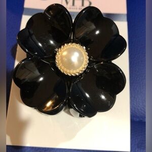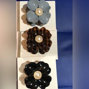 3pack flower shaped faux pearl rhinestone inset black, gray & tortoiseshell strong hold jaw clips new
