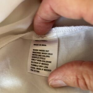 This cute top has ruffles across the bodice and at the bottom of each 3/4 length sleeve. It has a bottom and loop closure. It is made of 100% Lyocell which I wasn’t familiar with, but it has a smooth and flowing feel, but no stretch. It is bright white. The PTP measures 20”. It is 23” long. The 3/4 sleeves are 19”. This item comes from a smoke and pet free environment. Thanks for looking and ask any questions!