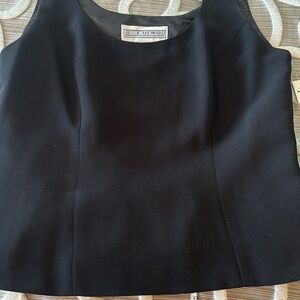 Princess seams front and back with a side invisible zipper make this top look amazingly flattering on! It’s solid black. It pairs well with jackets, as well as, stands alone with style. This was part of a 3-piece set, but this is the only piece I have☹️. It measures 19” PTP, 18” at the waist and 21” from the shoulder seam to the hem. Ask any questions!