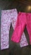Soft pink leggings with hearts and hot pink capris leggings, both in excellent condition