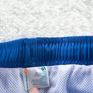 Solid blue swim trunks with bright green back pocket. Only worn once, like new condition.
