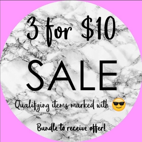 All items in my closet marked with a ๐Ÿ˜Ž are 3 for $10! Add 3 qualifying items to your bundle and offer $10.