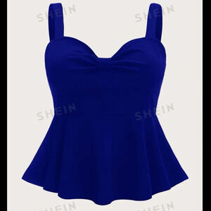 3 for $10 🛍️ SHEIN Classy Plus Royal Blue Solid Ruched Detail Peplum Tank Top