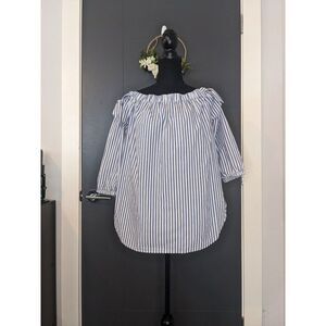 Gap Blue and White Stripe Off the Shoulder Blouse with Bow Detail - M *3 for $12 Closet Clear Out Bundle Sale*