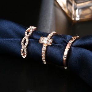3 piece ring set. Rose Gold Plated Alloy. Clear crystals. Dainty rings. Brand New.