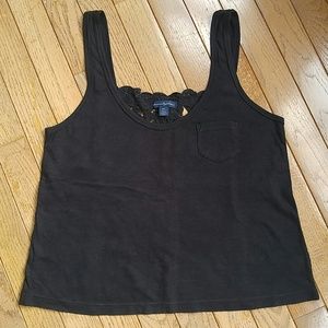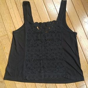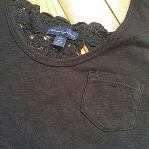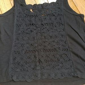Black tank with pocket on front and crochet pannel detail on back by American Eagle. Size small, but fits more like XS. In excellent condition, fabric is in great shape, with minimal signs of wear! No flaws to my eye. Perfect tank for summer! Pair with a bandeau or another tank for a layered look!