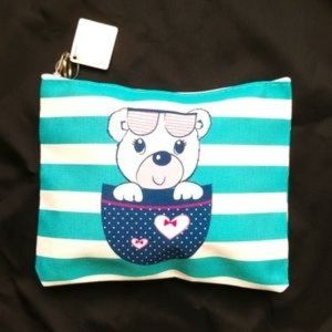 Super cute bear in a bowl bag. Great for make-up, travel, or to store your masks.