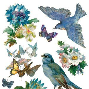 3 for $15 - Bluebirds & Blue Flowers Stickers - 2 Sticker Sheets for Scrapbooks