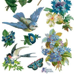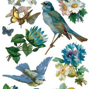 Blue flowers and bluebird stickers with ideal for crafting or scrapbooking.