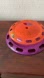 Interactive cat toy with orange and purple design. Perfect for playful cats.
