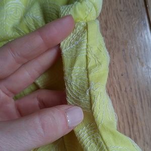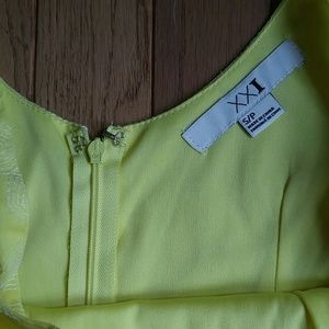 Citrine yellow sundress with white embroidered flower detail from Forever 21. Size small. Would fit size 2-4 best. Minor wear with some loose threads on embroidery as pictured, but overall in great shape. Fully lined. Only worn a couple of times. From a pet and smoke free home.