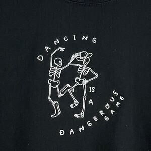 Black and white "Dancing is a Dangerous Game" skeleton dancing embroidered crewneck sweatshirt