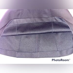 Nicely lined. Has front pockets. Zips in back with a button also.