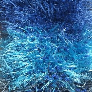 Aqua, royal, and black color block fuzzy scarf. New without tag, received as a gift and never wore. Hand knitted but unsure of actual material used.