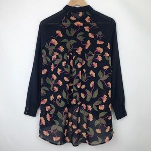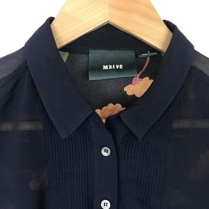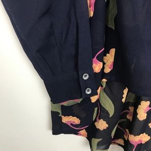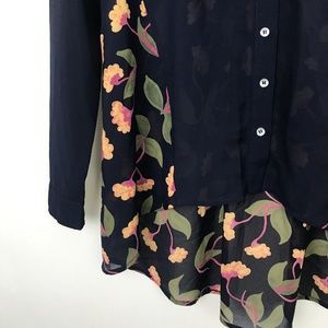 [3 for $15] Maeve Hi Low Long Sheer Blouse Floral Navy Blue 0