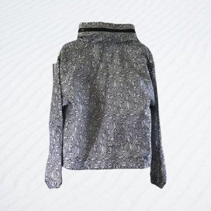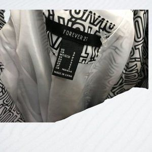 NWOT Forever 21 Windbreaker with zip in hood…black and white Tokyo print. Zipper pockets and bungee hem. size small