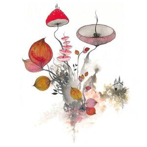 You can wander into this ethereal dreamscape. Discover the tiny, hidden details. And let yourself get lost. This durable sticker has a matte vinyl coating and is weatherproof and dishwasher safe. Use it to decorate your water bottle, laptop, phone, journal, or anything you want! Approximate size is 4" x 2.75".