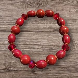 🩷3 for $15: Set of 2 Stretchy Bead Bracelets, Red & Gold, NWOT